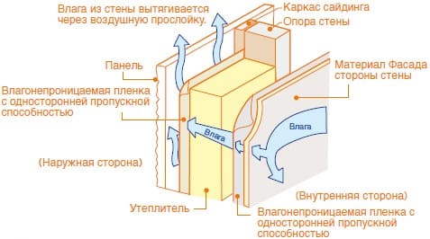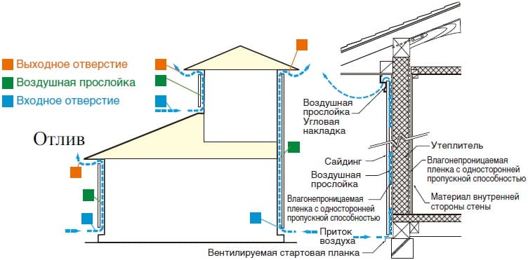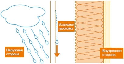 Капли дождя, которые попадают на стену, падают по воздушной прослойке вниз, где стекают по стартовой планке.